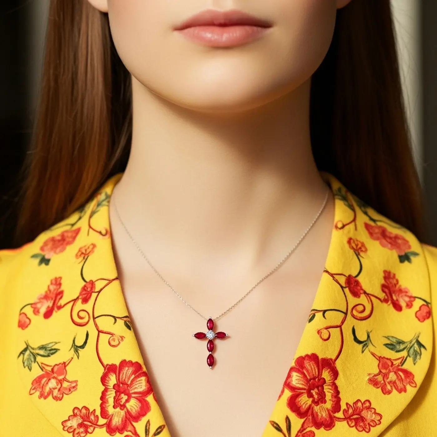 Висулка кръст от 18К злато с 1.71кт естествени рубини и 0.03кт естествени диаманти